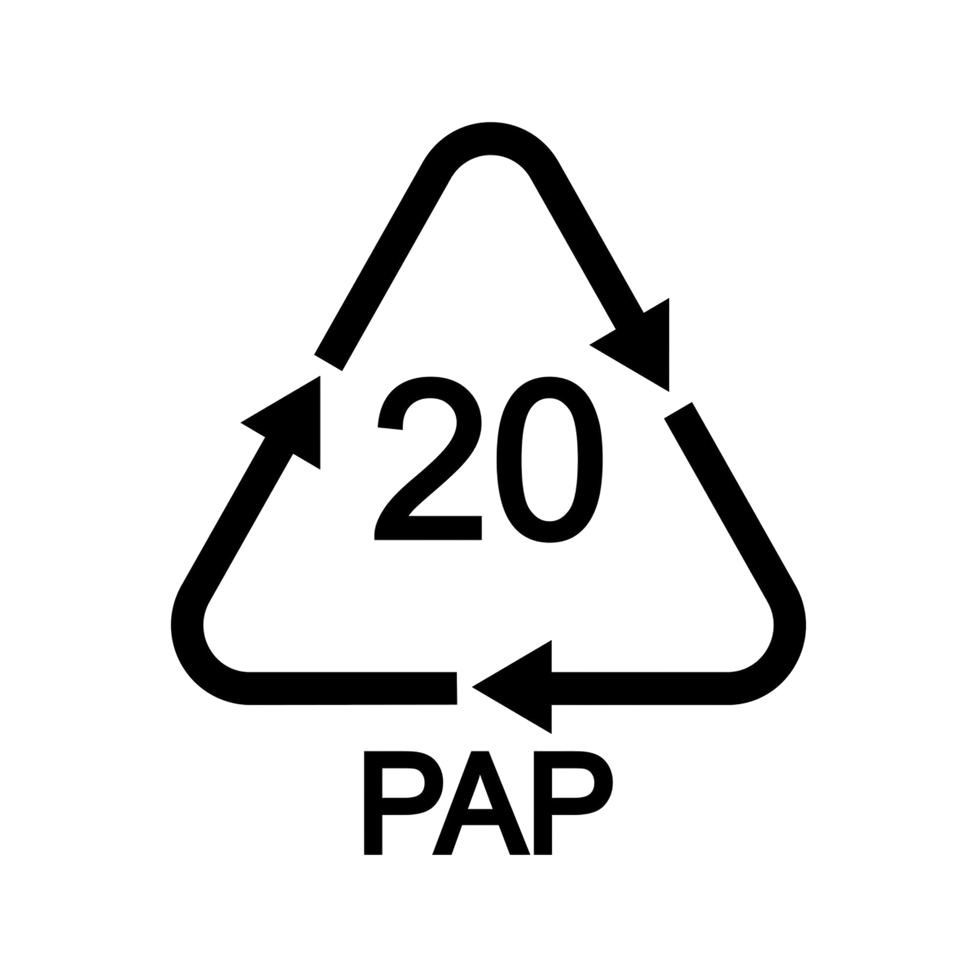The PAP 20 recycling code indicates that the packaging is made of corrugated fibreboard (commonly used for shipping boxes) and should be disposed of as paper packaging.